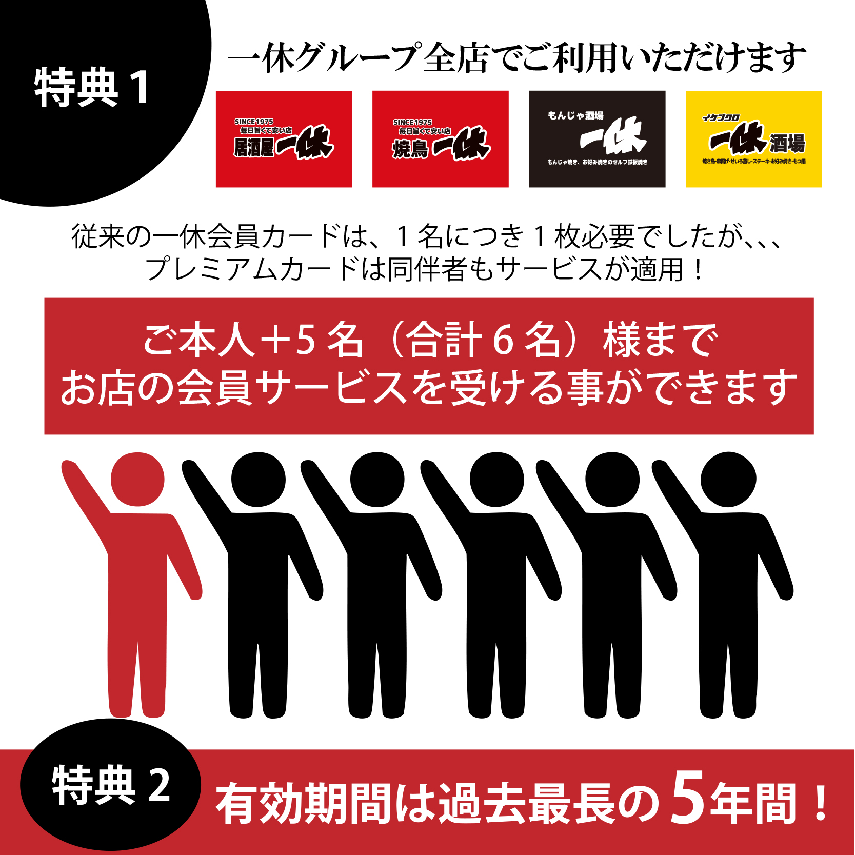 ①ご本人+5名様までご同伴、一休の会員サービスが受けられます